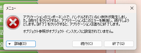 食種グループマスタを開こうとしたらエラー表示されました。